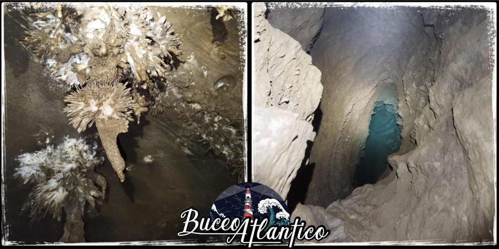 Pero las cuevas son así y no siguen una lógica y donde parecía que había posibilidades de bucear se quedó en tan solo 3 metros practicables, pero lejos de ser considerado como algo malo, fueron unas cuantas las incógnitas resueltas en torno a la parte sumergida de esta cueva, a la vez que nos sorprendió la temperatura del agua, lo que también nos sirve para replantearnos algunas cosas si algún día volvemos a bucear en esta cueva o en otras similares, ya que bastaría con el húmedo de 5mm, lo que implica menos lastre y menos material a la hora de portear. A la vez que ya he desarrollado un brazo por tramos que permita grabar estos sifones sin la necesidad de poner un pie dentro de ellos enturbiando rápidamente el agua y estropeando la grabación.