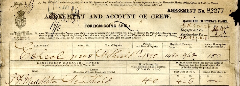 Encabezado de una lista de tripulantes del Eshcol de 1.881 extraída de la web http://www.crewlist.org.uk